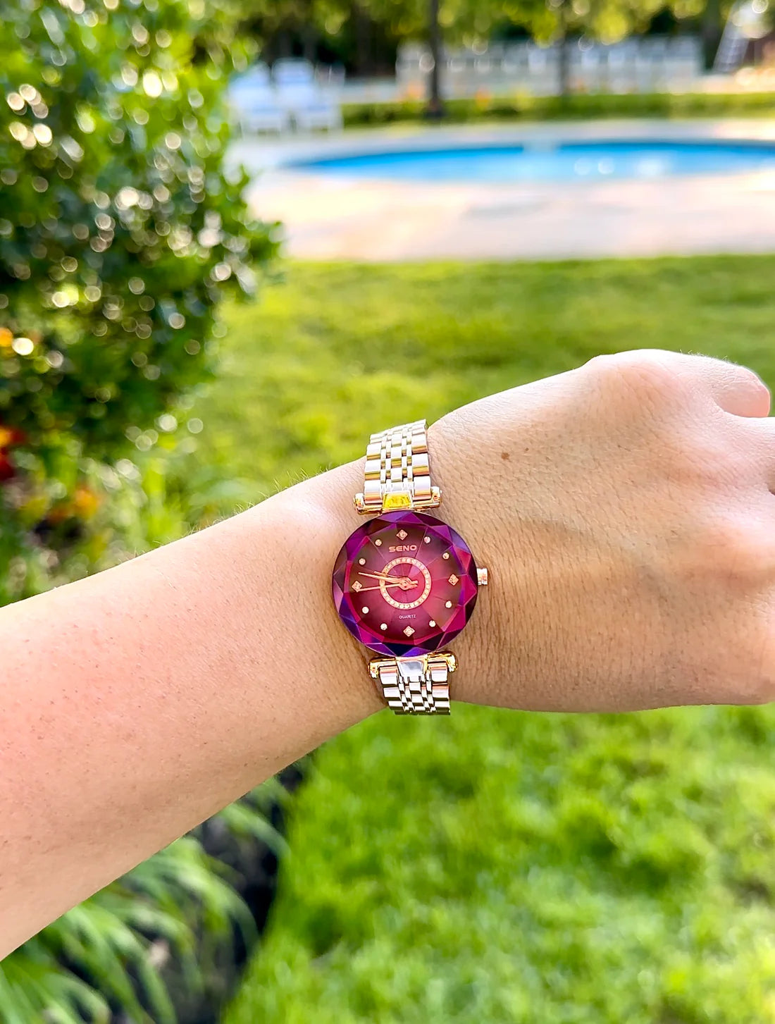 Nuestro reloj resistente al agua agregará sin esfuerzo un toque de estilo y clase a su muñeca. Este complemento es perfecto para mujeres que buscan una combinación de estilo, comodidad y funcionalidad. El reloj está fabricado con materiales de alta calidad y es resistente al agua, por lo que puede confiar en que resistirá el uso diario.
