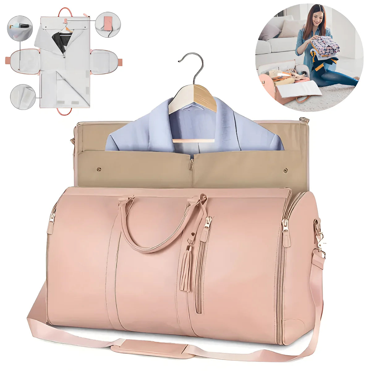 Dile adiós a tu maleta. El diseño plegable de la bolsa de viaje Luhxe te permite guardar el triple de ropa y accesorios en el mismo espacio. Ya no tendras que paga extra por una maleta en el aeropuerto.