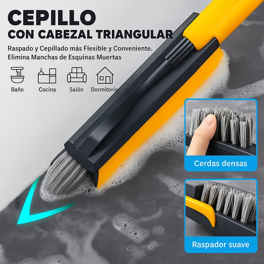 Nuestro cepillo con diseño ergonómico y cerdas en V ha sido especialmente diseñado para eliminar la suciedad incrustada en minutos, dejando tus pisos brillantes y como nuevos. 🪣