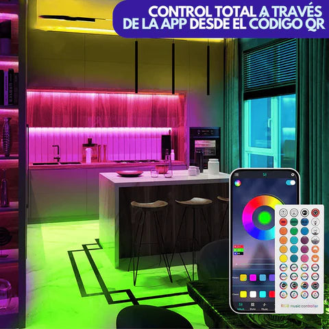 Puedes controlar las tiras LED directamente desde tu teléfono inteligente,sin importar dónde te encuentres en la habitación.