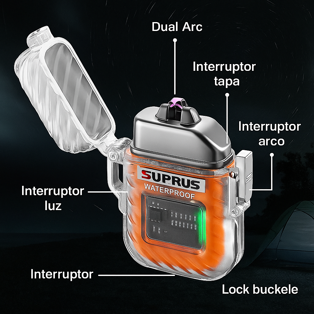 Resistente al viento, impermeable y sin necesidad de gas. Prende velas, fogatas o parrillas con solo un toque, incluso en las condiciones más difíciles.