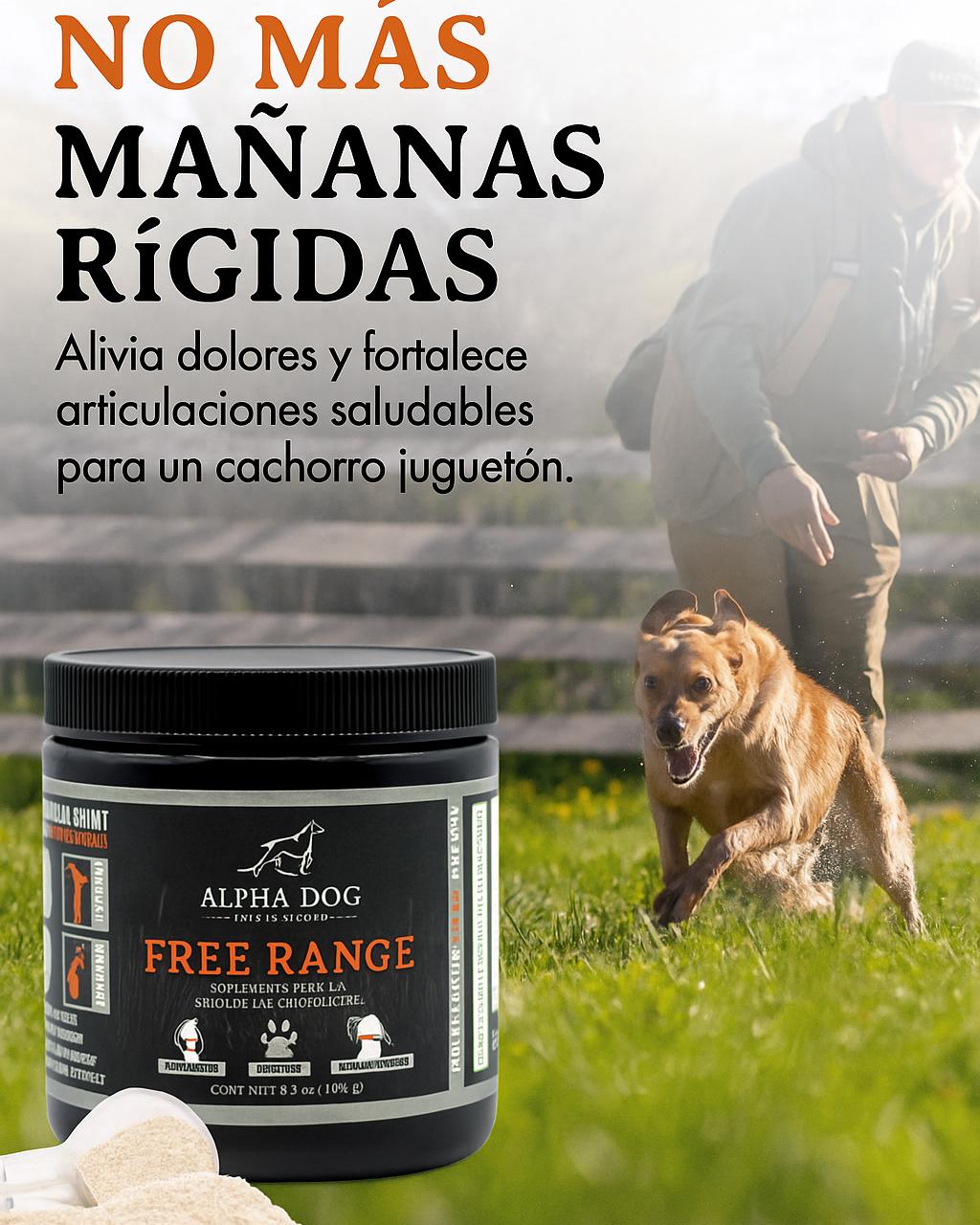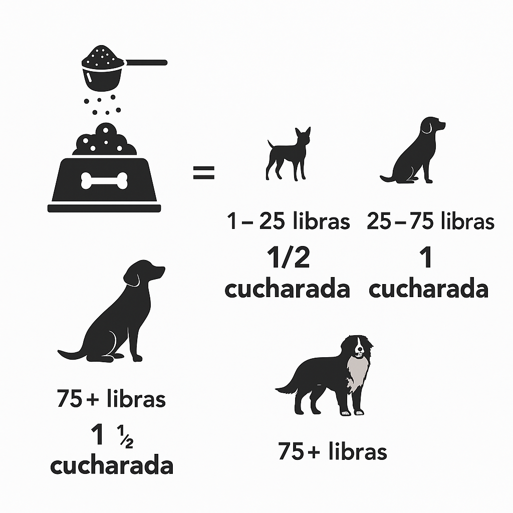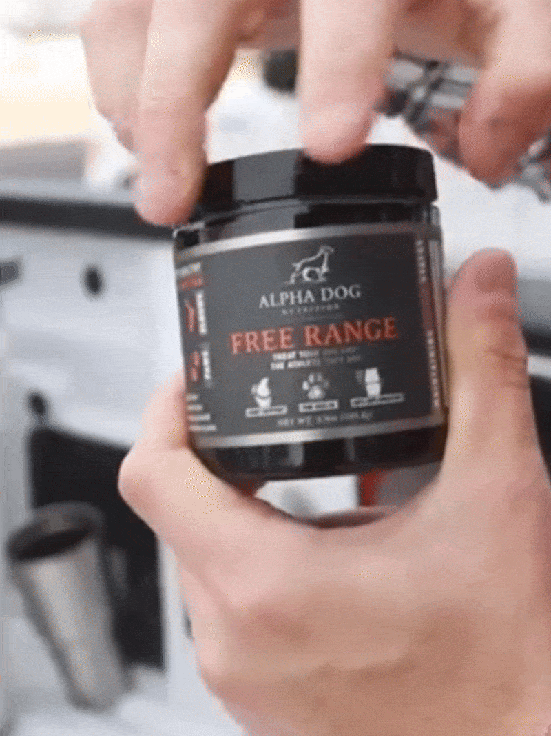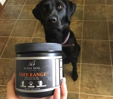 Simplemente espolvoree el polvo Free Range sobre la comida de su perro una o dos veces al día.