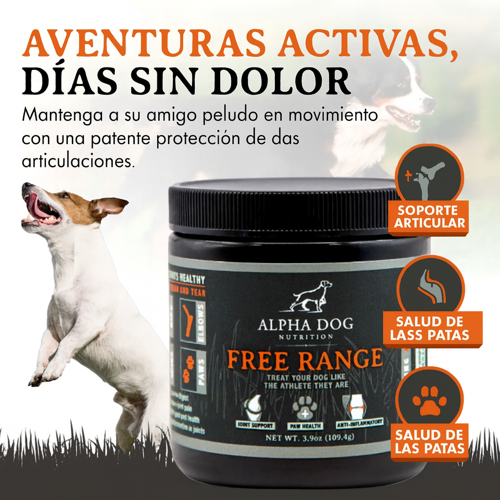 Free Range es un suplemento de apoyo para las articulaciones formulado con una mezcla sinérgica de ingredientes premium para ayudar a mantener las articulaciones saludables y mejorar la movilidad en los perros.