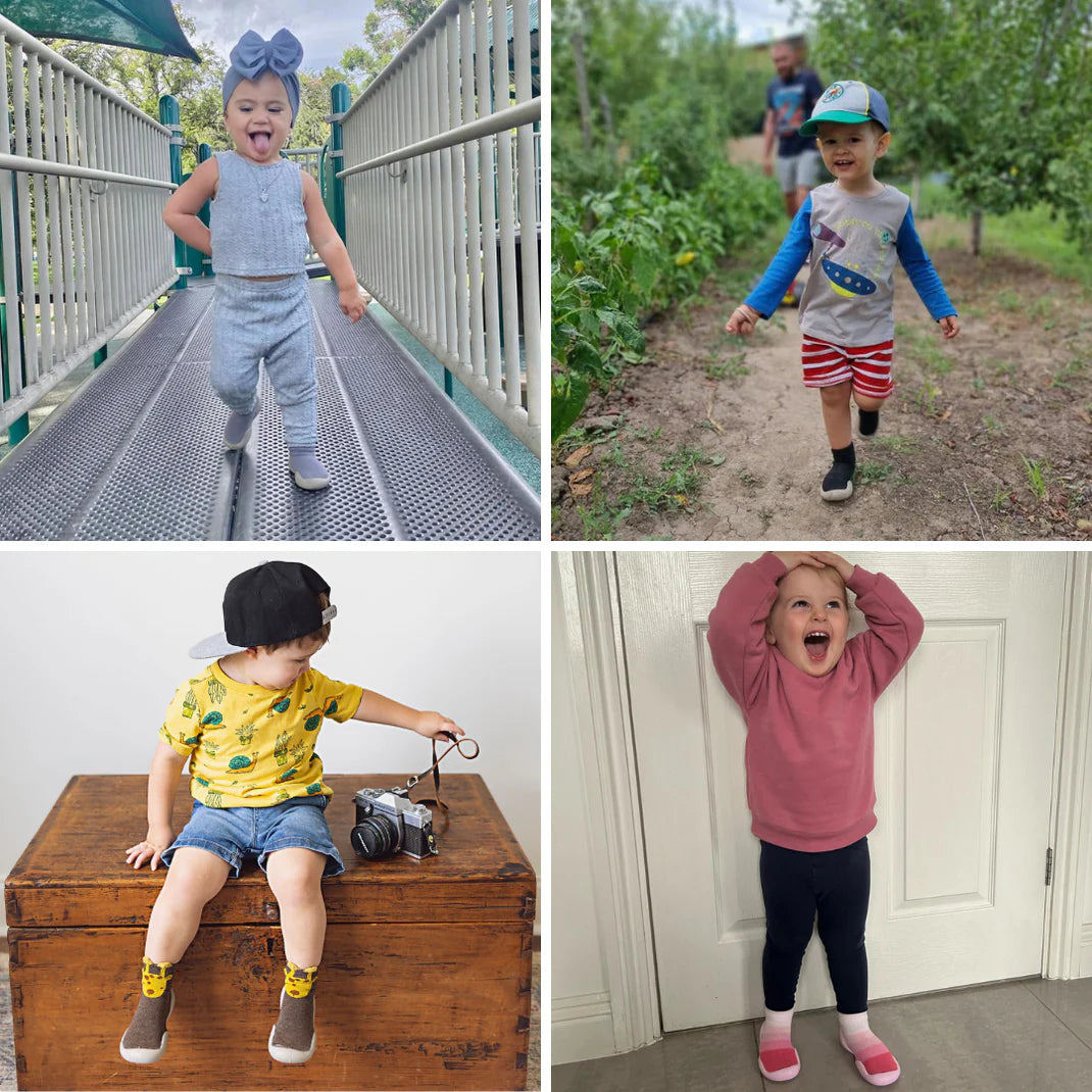 Al usar nuestros zapatos tipo calcetín con puntera ancha, garantiza un desarrollo natural adecuado del pie y puede ayudar a evitar que su pequeño tenga uñas encarnadas, dedos en martillo, ampollas, callos o juanetes.