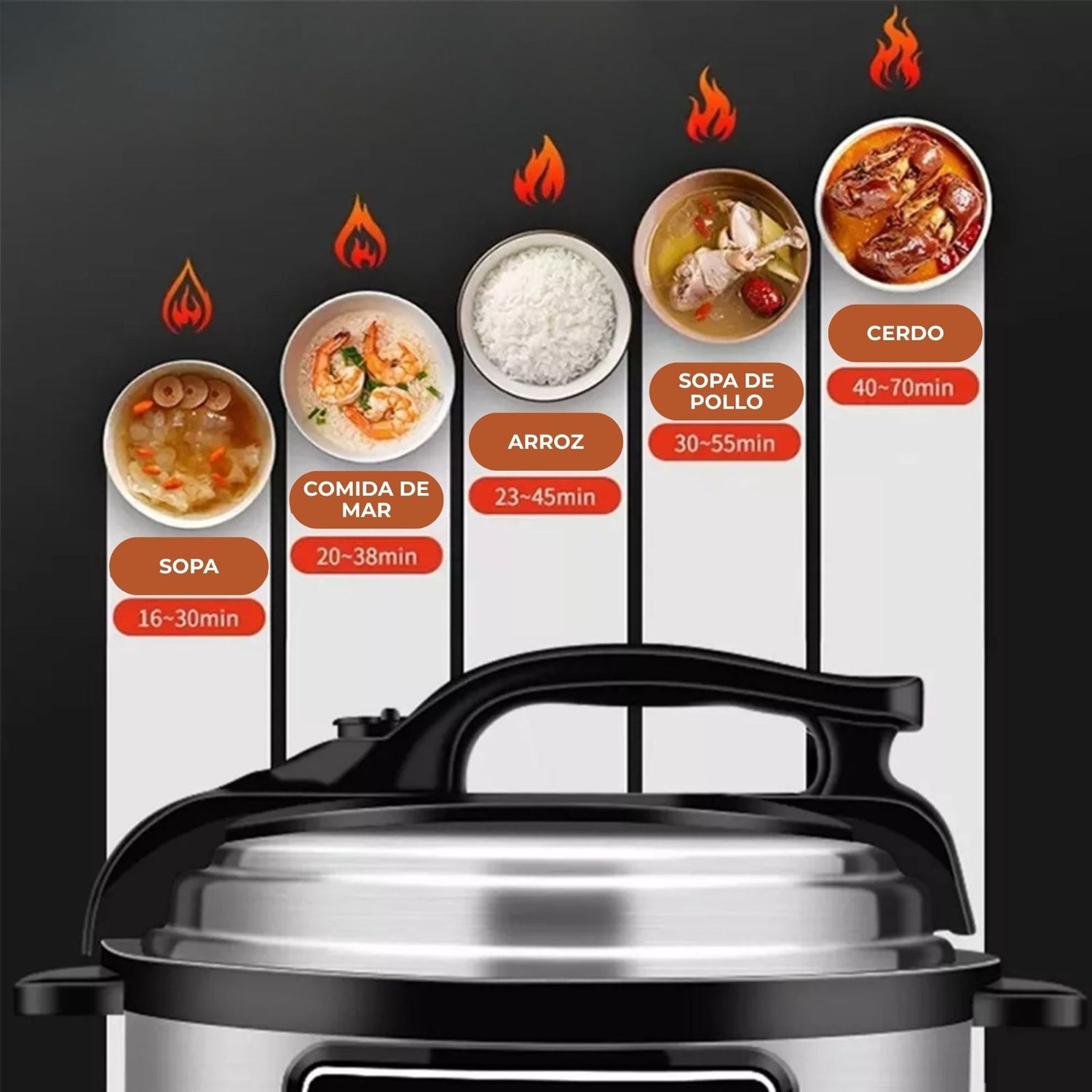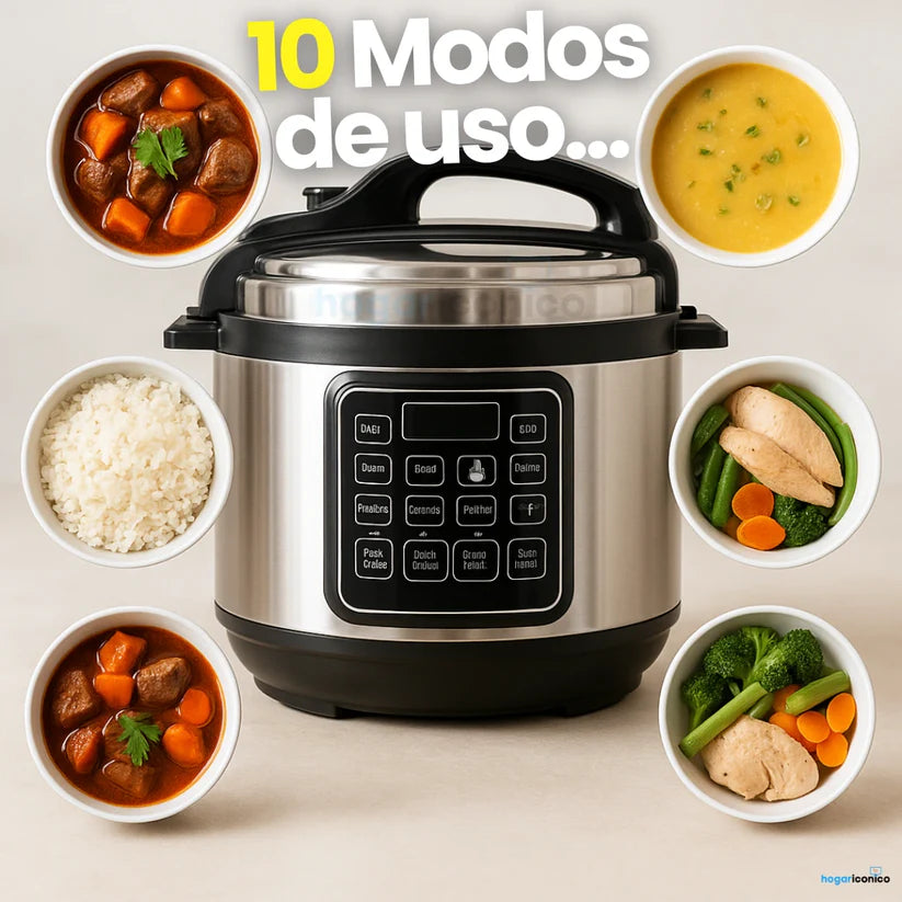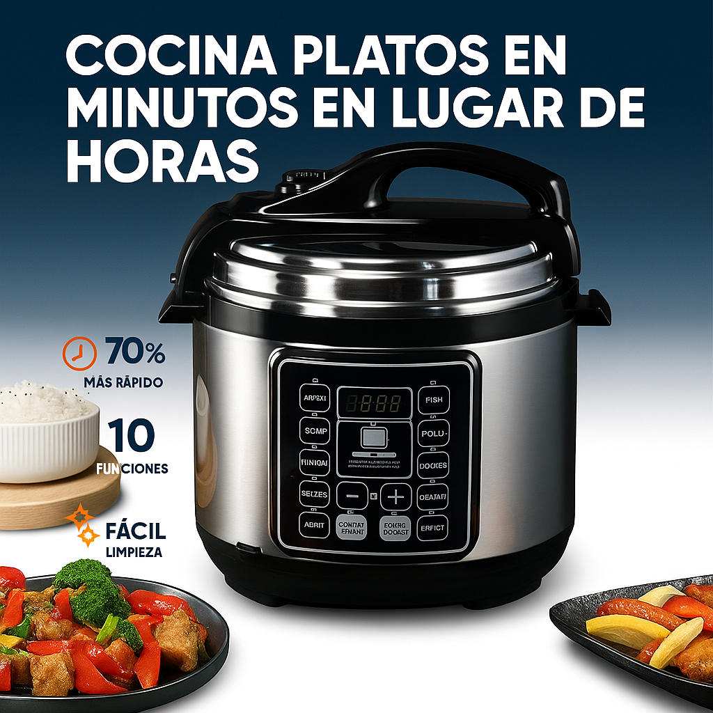 Con nuestra olla 10 en 1 olvídate de esperar horas en la cocina. Su tecnología de cocción a presión te permite preparar desde arroz hasta carnes jugosas en solo minutos, ahorrando tiempo y energía sin sacrificar sabor ni calidad