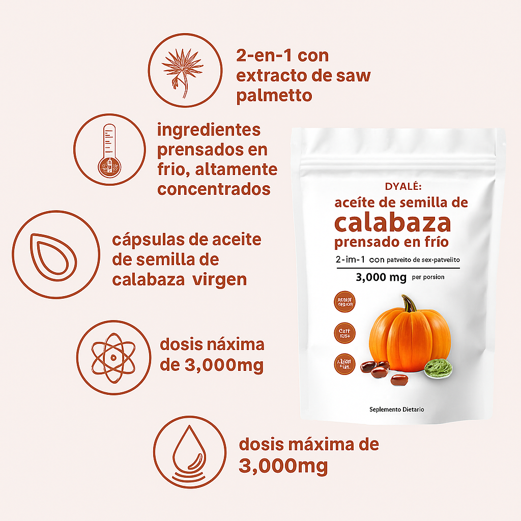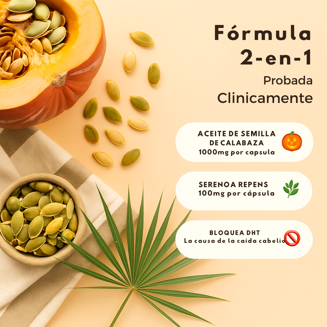 Nuestras cápsulas blandas de aceite de semilla de calabaza + saw palmetto totalmente naturales están clínicamente probadas para aumentar el número de cabello y reducir la caída del cabello en mujeres en la peri o posmenopausia.
