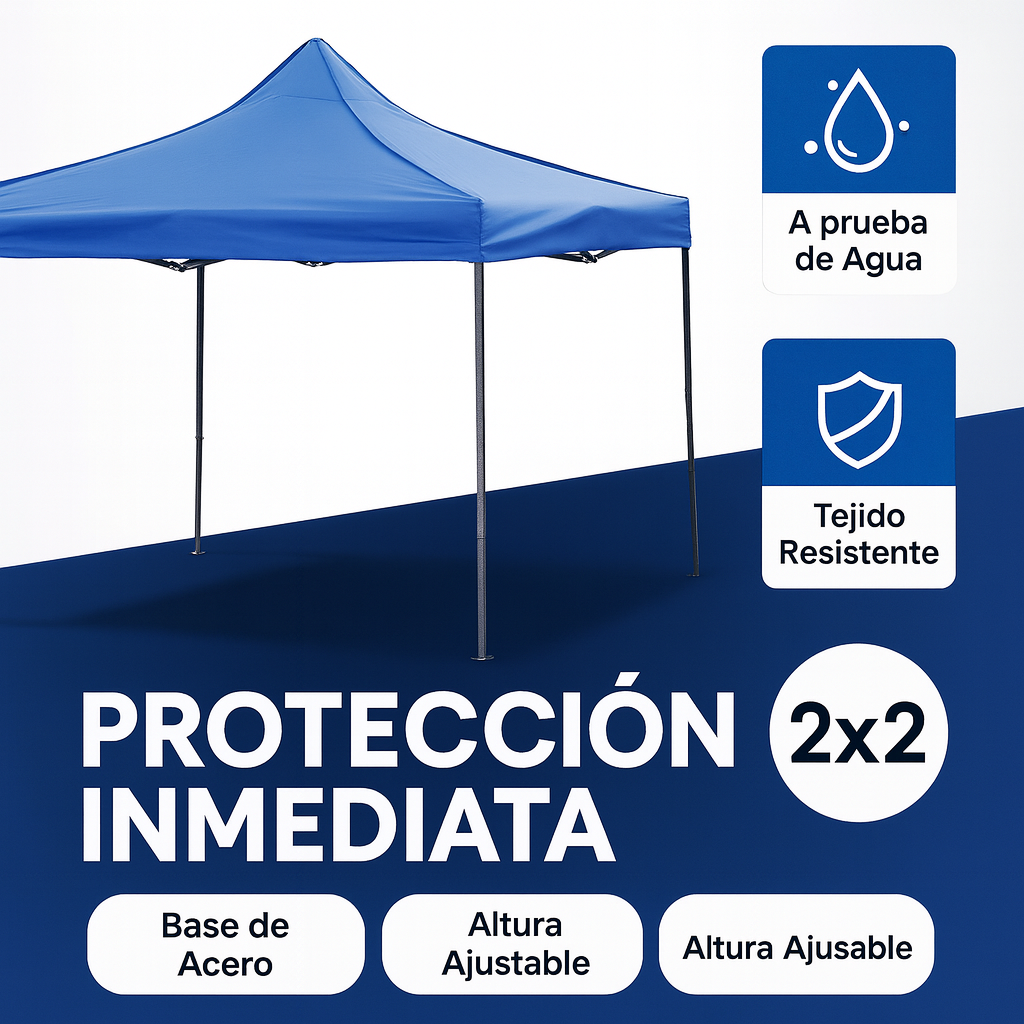 Esta carpa plegable de 2x2 m con estructura reforzada se instala en menos de un minuto. Ideal para proteger tu carro, moto o montar un puesto en ferias y eventos.