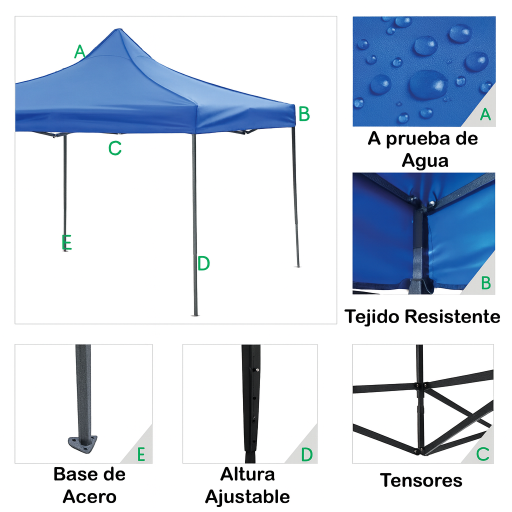 Gracias a su lona Impermeable 420D y estructura de acero anticorrosivo, tendrás durabilidad, portabilidad y protección todo en uno.